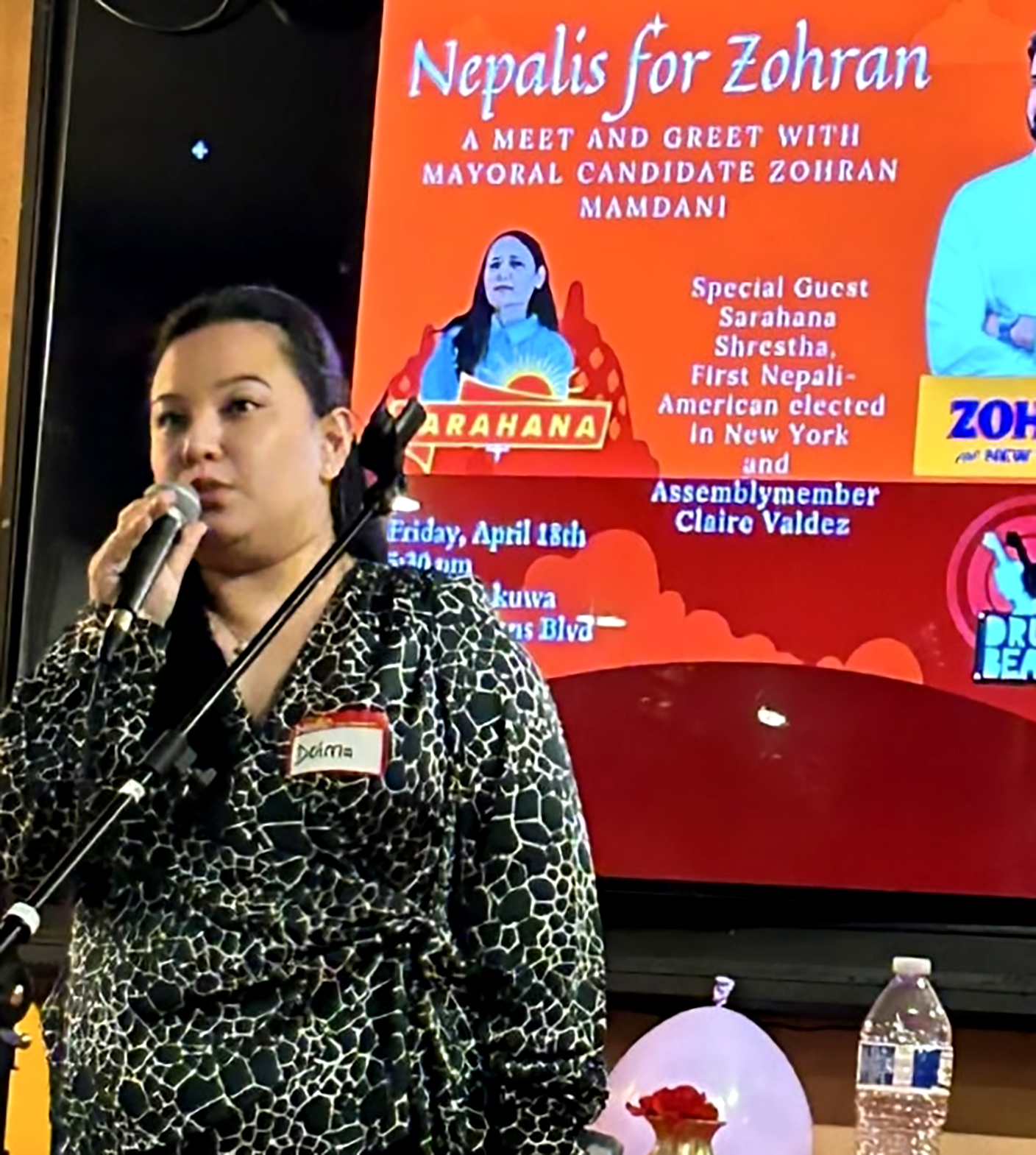 कम्युनिटी एक्टिभिस्ट श्रेया तुलाधारले पछिल्लो दशक न्यु योर्क सिटीमा नेपाली समुदायको संख्या २५० प्रतिशतले बढेको उल्लेख गर्दै उनीहरूले आफ्नो आवाज उठाउनु जरुरी रहेको बताइन्। ‘हामीलाई हाउजिङ सेफ्टी, एजुकेशनका लागि संघर्ष गने नेतृत्व चाहिन्छ,’ उनले भनिन्, ‘हामीलाइ हाम्रो पक्षमा काम गर्ने मेयर चाहिन्छ।’