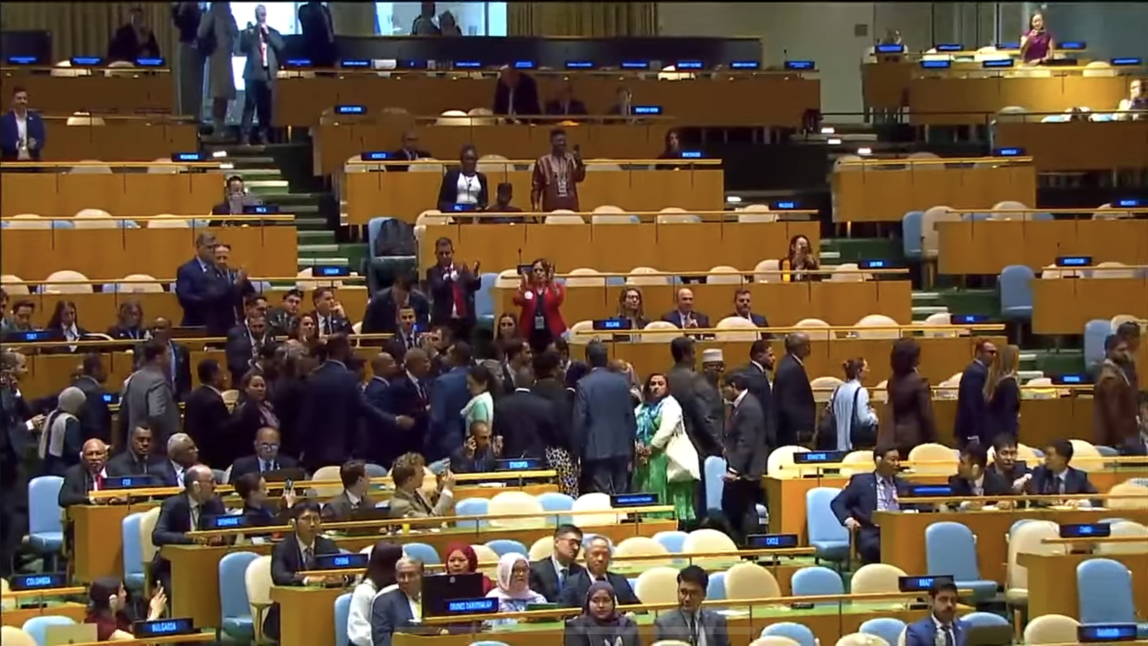 संयुक्त राष्ट्रसङ्घको महासभा (यूएनजीए) इजरायली प्रधानमन्त्री बेन्जामिन नेतन्याहूको कडा प्रतिवाद भएको छ।