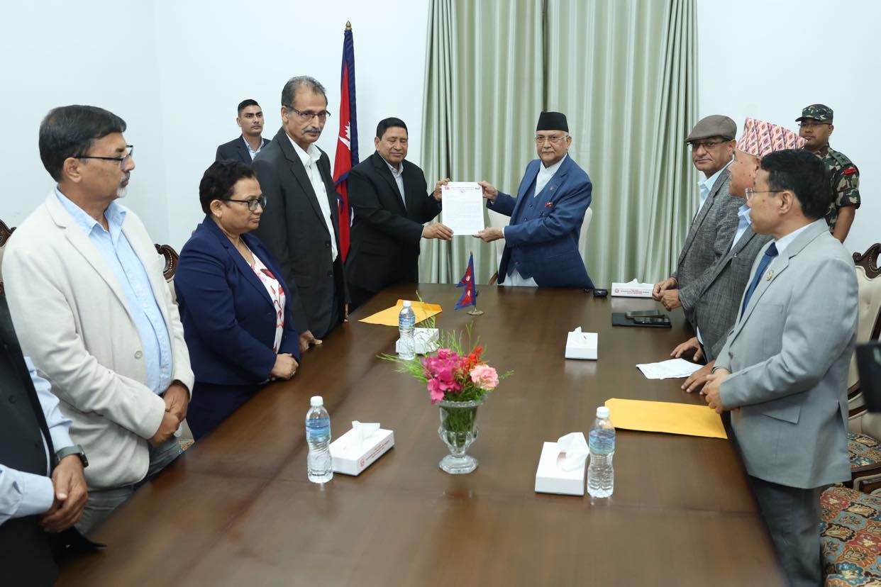 यसैगरी प्रधानमन्त्री केपी शर्मा ओलीलाई नेकपा (माओवादी केन्द्र) ले बाढी, पहिरो, डुबानका कारण उत्पन्न जोखिमलाई न्यूनीकरण र घटनालगत्तै खोज, उद्धार र राहतका कामलाई व्यवस्थित गर्न आग्रह गरेको छ । प्रधानमन्त्री तथा मन्त्रिपरिषद्को कार्यालय, सिंहदरबारमा सो पार्टीका वरिष्ठ उपाध्यक्ष नारायणकाजी श्रेष्ठसहितको टोलीले सो ध्नानाकर्षण गराएको हो । नेता श्रेष्ठले पूर्व तयारीका काम र विपद्पछि तत्काल खोज, उद्धार र राहतका काममा लाग्न आग्रह गर्दै यसका लागि सम्बन्धित निकाय र सबै पक्षले साझा दायित्व सम्झिनुपर्नेमा जोड दिनुभयो । सो दलले विपद व्यवस्थापनका काममा राज्यसँग मिलेर काम गर्न आफ्नो दल तयार रहेको स्पष्ट गर्नुभयो । प्रधानमन्त्री ओलीले विपदका् न्यूनीकरण गर्ने र आइलागेको विपद्को सामना गर्न सबै पक्ष मिलेर गर्नुपर्ने र यस काममा सरकारले अगुवाइ गर्ने बताउनुभयो । सो अवसरमा गृहमन्त्री रमेश लेखक, माओवादी केन्द्रका उपाध्यक्ष अग्निप्रसाद सापकोटा, महासचिव देवप्रसाद गुरुङ, उपमहासचिवहरु वर्षामान पुन, जनार्दन शर्मा, पम्फा भुसाललगायत नेताहरु सहभागी थिए ।