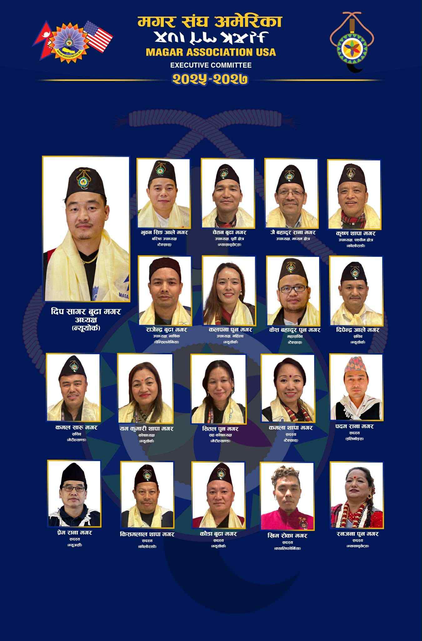 मेरिल्याण्ड। मगर संघ अमेरीकाको १०औं राष्ट्रिय महाधिवेशनले दिप सागर बुढा मगरको नेतृत्वमा १९ सदस्यीय कार्यसमिति निर्बिरोध चयन गरेको छ । मेरिल्याण्ड राज्यको बाल्टिमोर शहरमा अगस्ट २ मा भएको महाधिवेशनले नयाँ कार्यसमिति चयन गरेको हो । महाधिवेशनमा अमेरिकाको बिभिन्न राज्यबाट सयौं मगरहरुको उत्साहजनक उपस्थिति रहेको थियो । कार्यसमितिको बरिष्ठ उपाध्यक्षमा भुवन सिङ आले मगर (टेक्सास), महासचिबमा केश बहादुर पुन मगर (टेक्सास), र अन्य ५ उपाध्यक्ष निर्बिरोध निर्वाचित भएका छन्। अन्य उपाध्यक्षहरुमा चेतन बुढा मगर (म्यासाचुसेट्), जै बहादुर राना मगर, कृष्ण राणामगर (कोेलोराडो), राजेन्द्र बुढा मगर ( उपाध्यक्ष भाषिक, पेन्सिलभानिया), उपाध्यक्ष महिला कल्पना पुन मगर (न्यू योर्क), सचिबमा दिपेन्द्र आलेमगर (न्यू योर्क), दिपेन्द्र आले मगर (न्यू योर्क) सचिब कमल सारु मगर (टेक्सास), कोषाध्यक्षमा यम कुमारी थापा मगर (टेक्सास), सह कोषाध्यक्षमा सितल पुन मगर (मेरिल्याण्ड) चयन भएका छन् । सदस्यहरु कमला थापा मगर (टेक्सास), खिम रोका मगर (क्यालिफोर्निया), प्रेम राना मगर (न्युजर्सी), किसमलाल थापा मगर (कोलोराडो), कौडा बुढा मगर (न्यू योर्क), पदम राना मगर (न्यू योर्क) रन्जना पुन मगर (म्यासाचुसेट्स) रहेका छन् । कार्यसमितिको कार्यकाल २ बर्षको रहने छ।