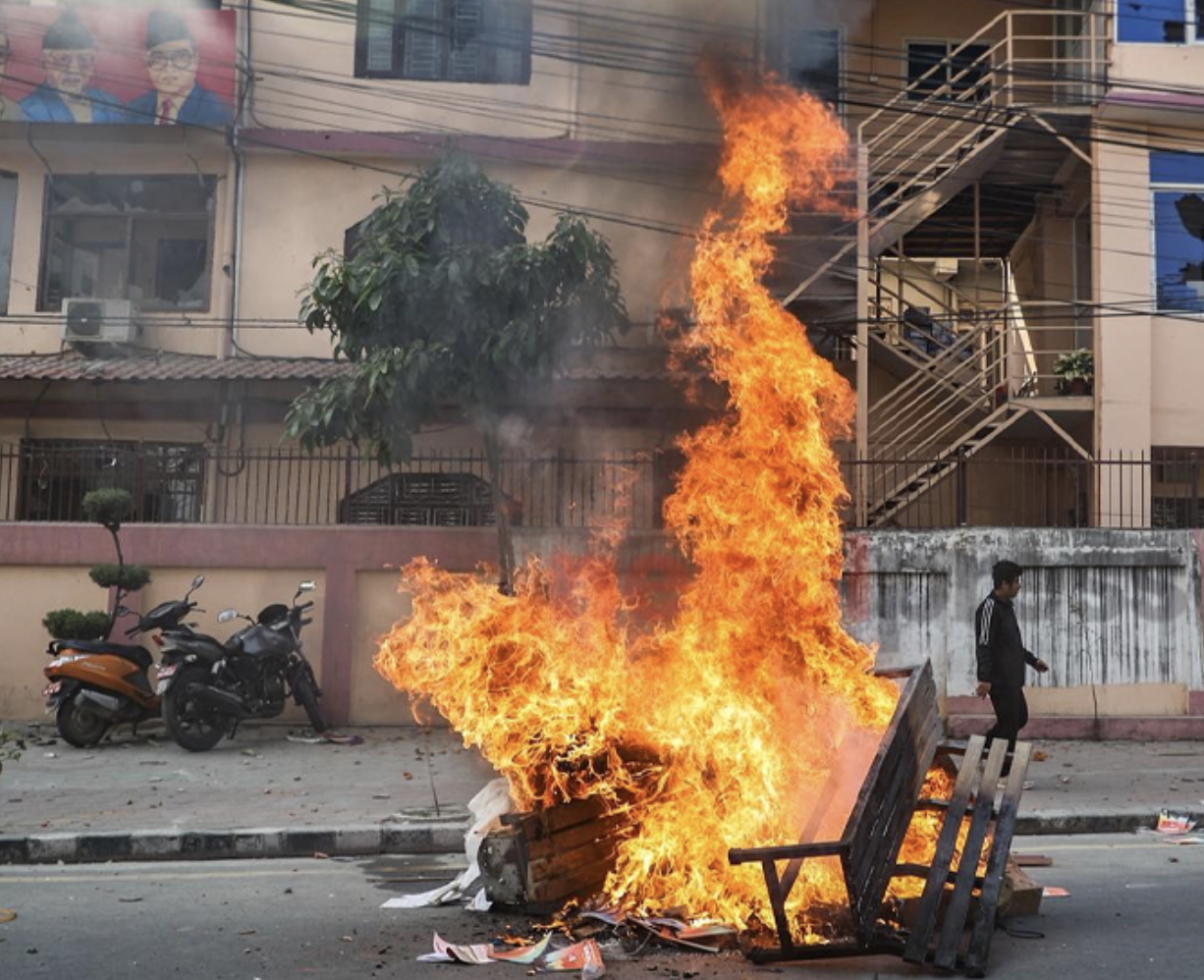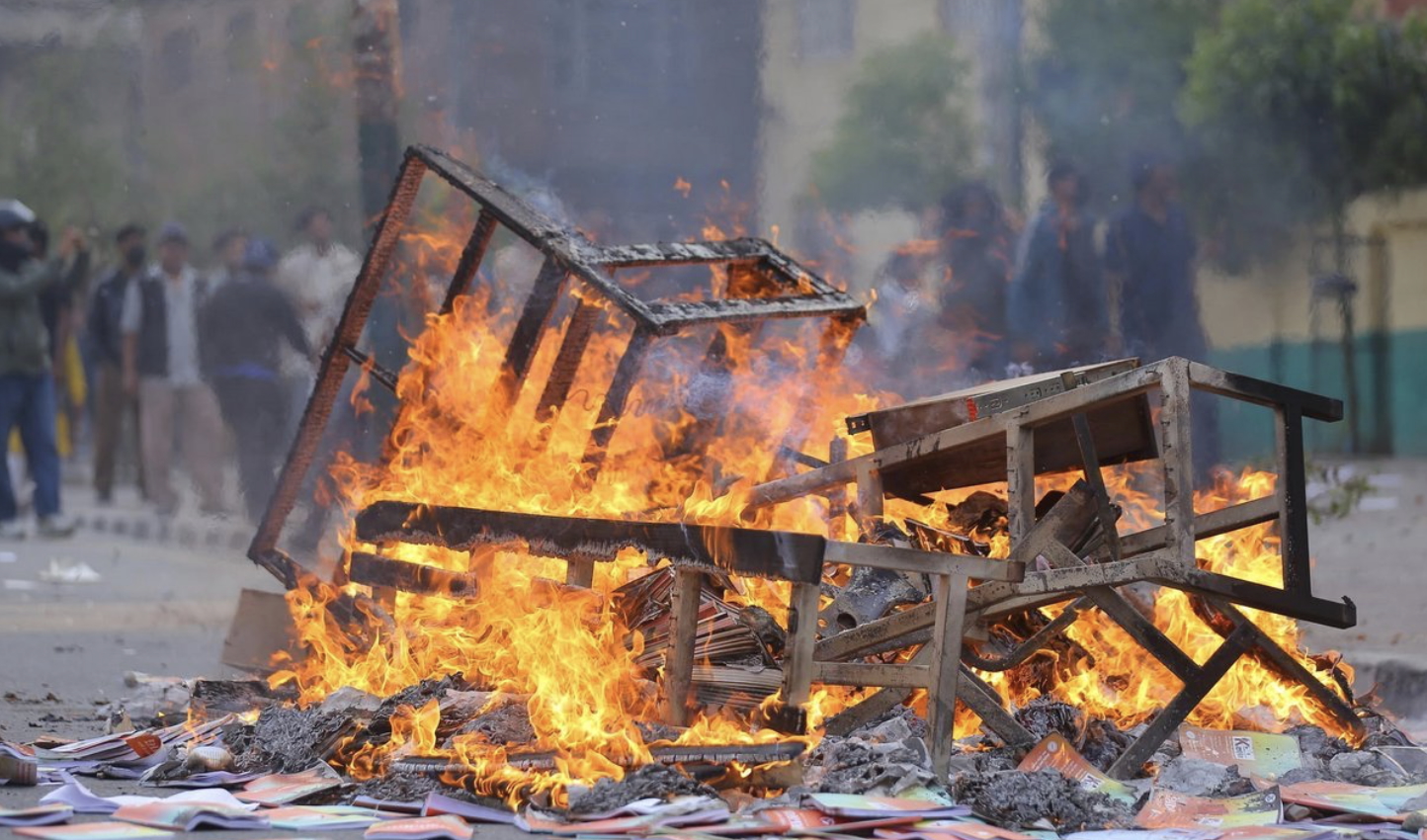पूर्वराजाको समर्थनमा प्रदर्शनमा उत्रिएकाहरूले जडीबुटी उत्पादन तथा प्रशोधन कम्पनीको कार्यालयमा आगो लगाएका छन् । कम्पनीको कार्यालय र गाडीमा आगजनी हुँदा प्रहरी पुग्न सकेको थिएन ।