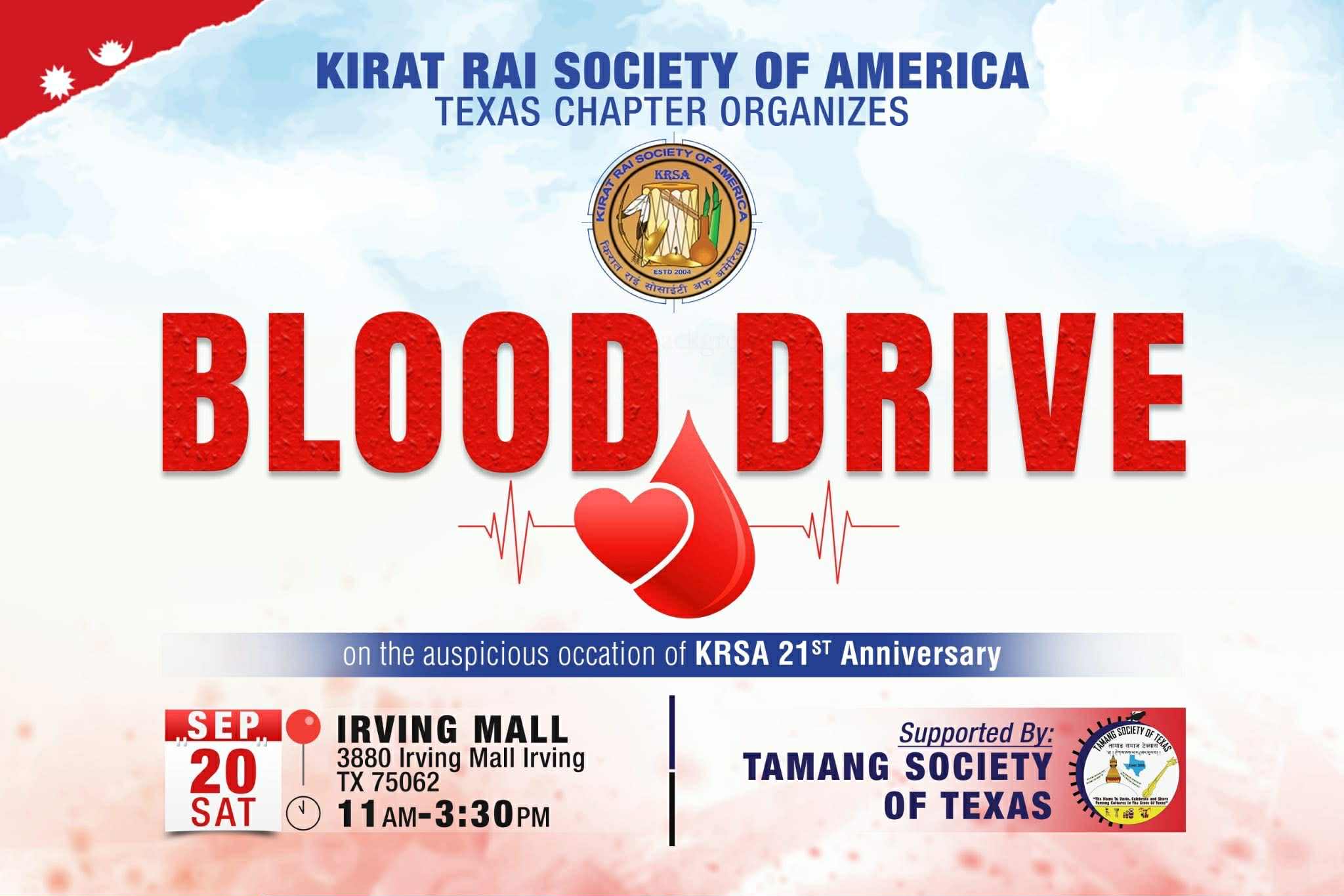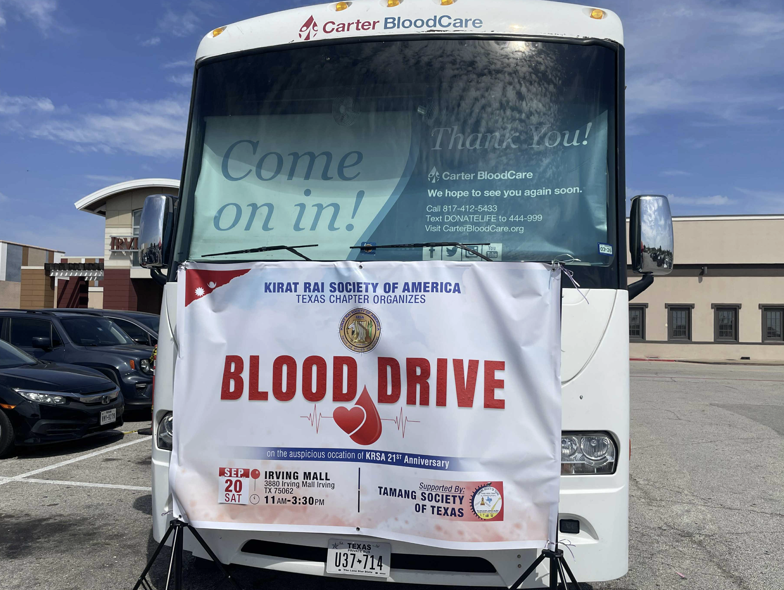 टेक्सास। किरात राई सोसाइटी अफ अमेरिका (केआरएसए) टेक्सास च्याप्टरले रक्तदान कार्यक्रम आयोजना गरेको छ। रक्तदान शनिबार (सेप्टेम्बर २०) मा टेक्सासको अर्भिङस्थित अर्भिङ मलमा भएको थियो।