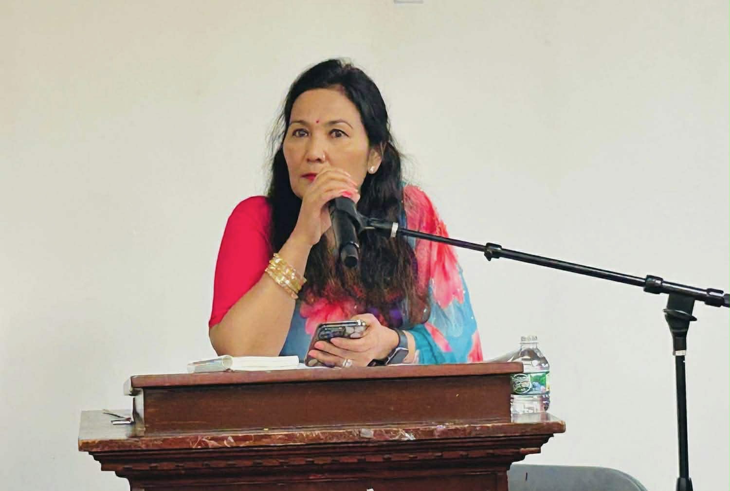 कार्यक्रमका प्रमूख अतिथि नेपाली महावाणिज्यदुतावास न्यू योर्कका महावाणिज्यदुत दधिराम भण्डारीले महिला दिवसको शुभकामना व्यक्त गर्दै महिला शशक्तिकरण भए मात्र समग्र समाज शशक्त बन्ने उदाहरण नेपालको वर्तमान परिस्थिति रहेको बताए । घरेलु हिंसा, र महिला शशक्तिकरणको बारेमा छलफल र जनचेतना जगाउने काममा नेपाली डायस्पोराका संघसंस्थाहरुको मिलेर काम गर्नु आवश्यक्ता रहेको महावाणिज्यदुत भण्डारीको भनाइ छ । वरिष्ठ कानून व्यवसायी खगेन्द्र जिसीले महिला दिवसको अवसरमा शुभकामना व्यक्त गर्दै महिलाहरुले गरेका योगदानलाई भुल्न नहुने बताऐँदै नेपालमा प्रधानमन्त्री महिला बन्न सक्नु ठुलो उपलब्धी रहेको बताए । महिला र र पुरुष बराबरी भनिए पनि अमेरिकामा रहेर पनि नेपाली महिलाहरुले अझै पनि पुरुष सरह अवसर नपाएको कानुन व्यवसायी जिसीको भनाई छ । बर्तमान सरकारले सामान्य घरायसी विवादलाई समेत संवेदनशिल रुपमा हेरिरहेको बताउँदै उहाँले केही समस्या भएमा संवेदनशिल भएर मात्र उजुरी गर्न सुझाव दिए ।