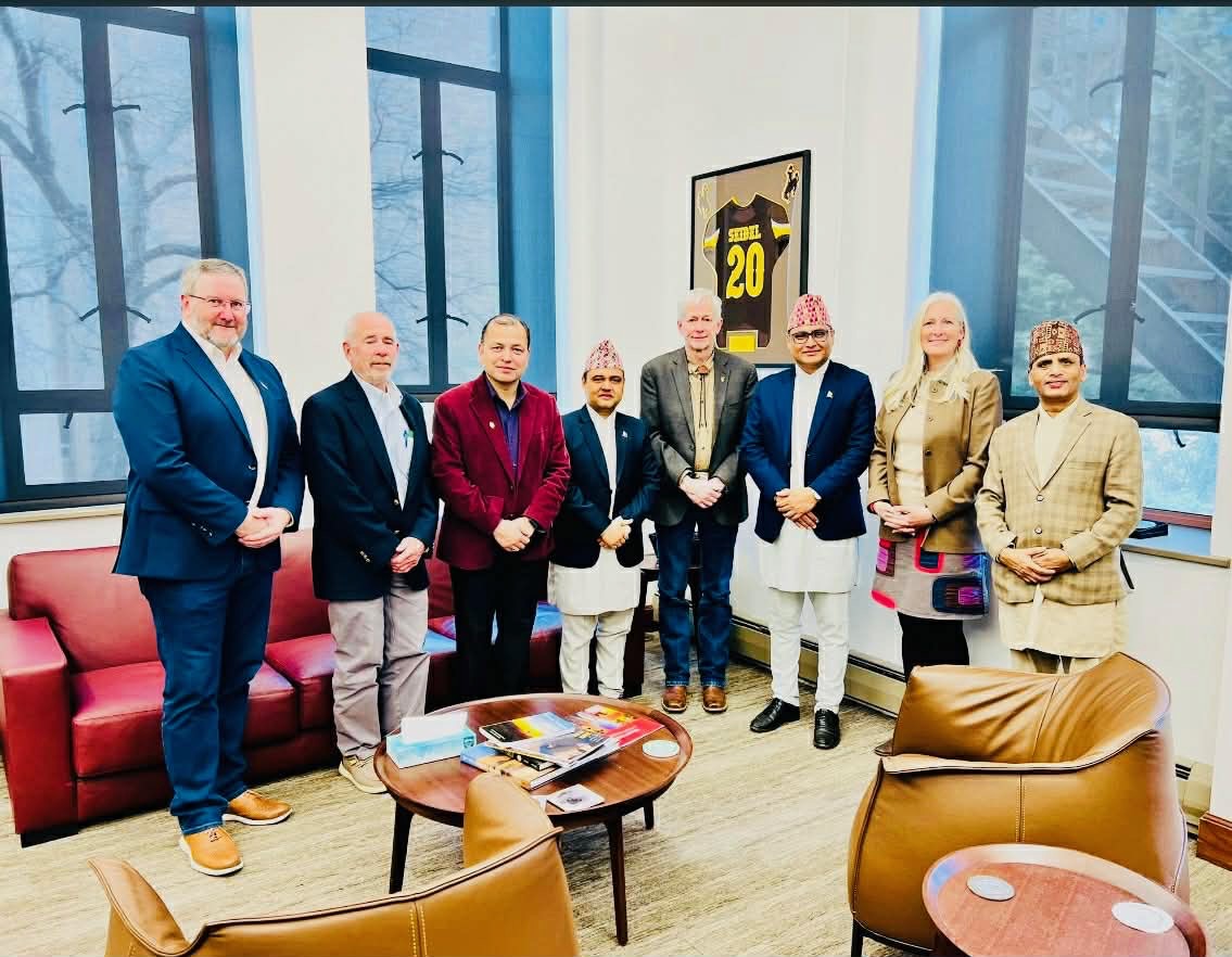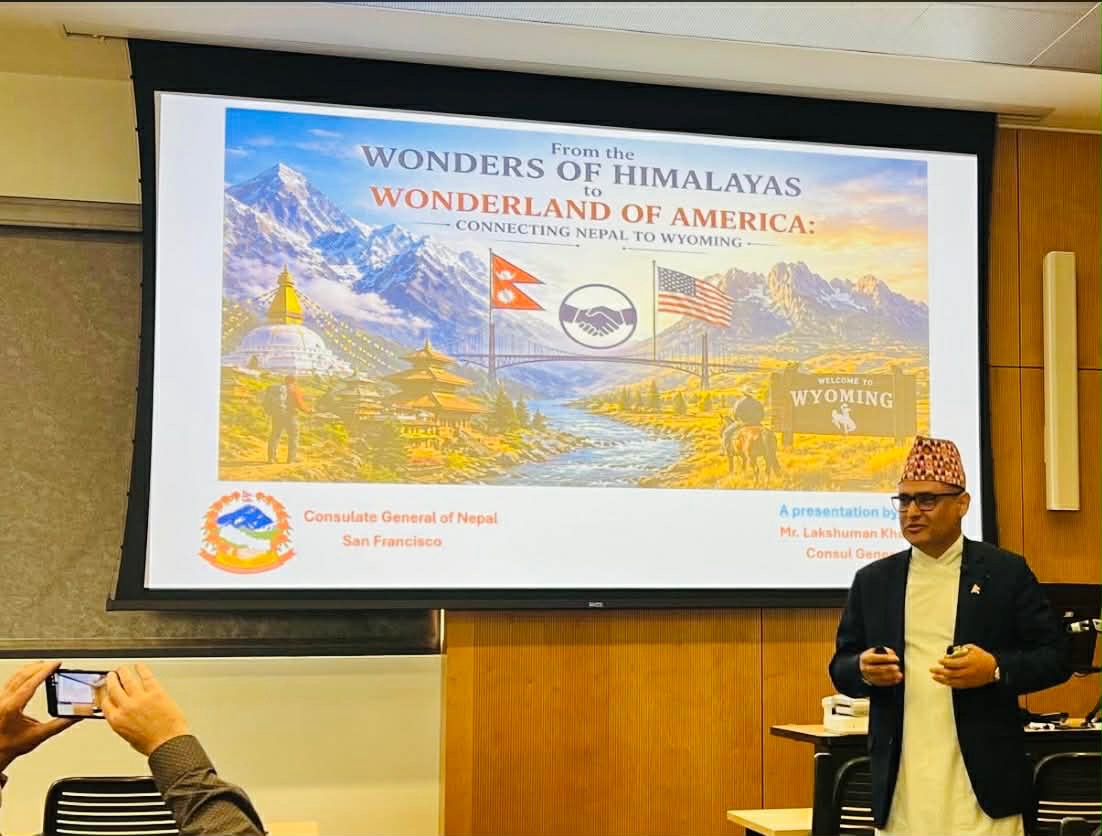 महावाणिज्यदूत खनाल र गभर्नरबीच अप्रिल २४ मा भेट भएको हो । यसैबीच महावाणिज्यदूत खनाल Central Wyoming College -CWC रिभर्टनमा आयोजना भएको CentralWyoming Innovation & Entrepreneurship Conference 2026 मा सहभागी भएका थिए । सम्मेलनको क्रममा खनालले वायोमिङ्ग राज्यका विधायक माननीय इभान पोसेसँग भेट गरी नेपाल र वायोमिङ्ग राज्यबीच हुनसक्ने सहयोग एवम् सहकार्यका क्षेत्रहरुका बारेमा सामान्य छलफल गरेको महावाणिज्यदूतले जनाएको छ ।