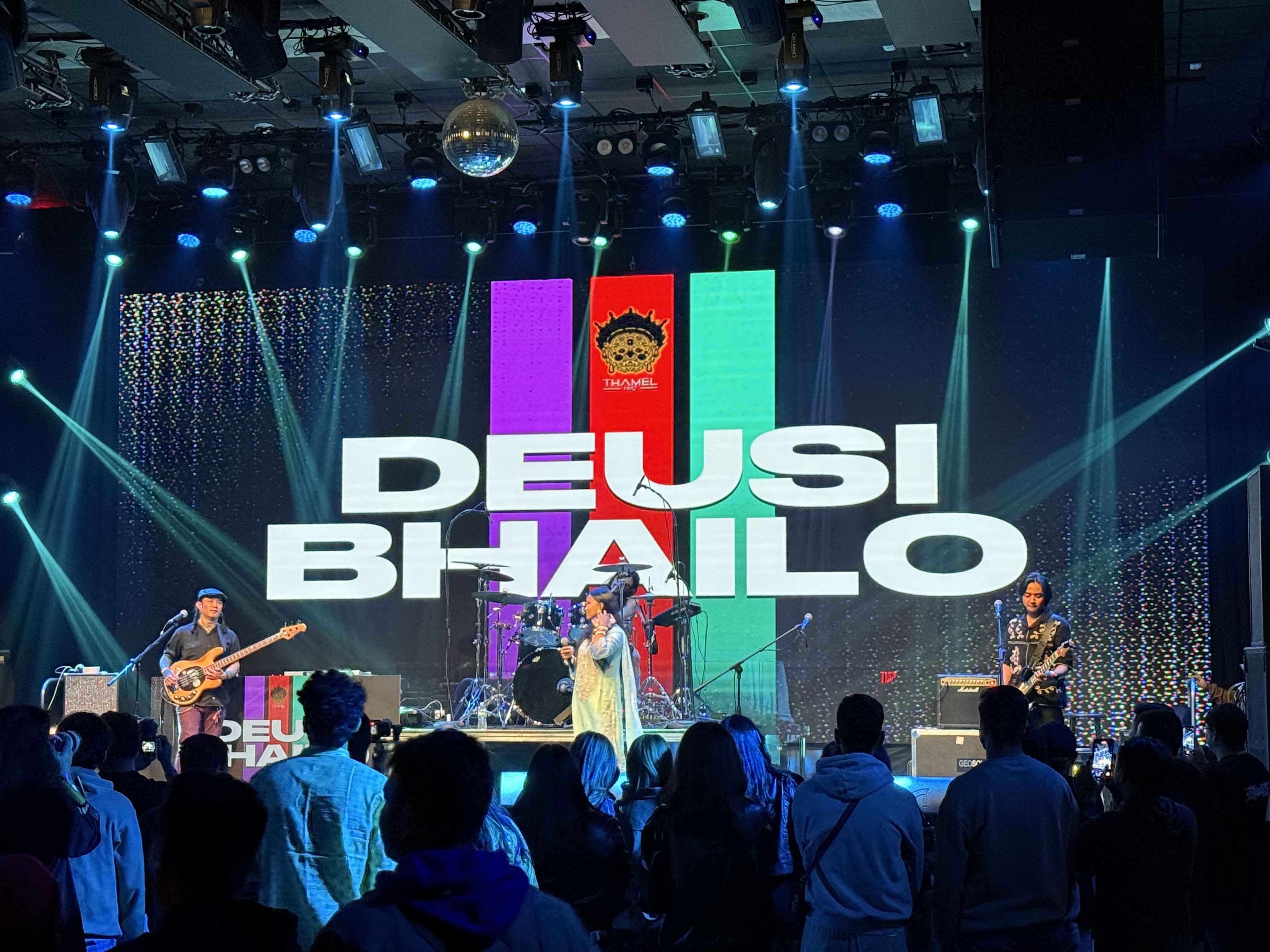 कार्यक्रम ठीक ११ बजे सुरु भयो। न्यू योर्क सिटीको लोकल ब्याण्ड गाउँ एण्ड गल्लीले ड्रम र गितारबाट सुरुमै फ्लोर ततायो। त्यसपछि सुरु भयो देउसी भैलो। रिमिक्स शैलीको ‘‘भैलेनी आइन आगन बडारी कुडारी राखन’’ र ‘‘भन मेरा भाइ हो’’ मा दर्शक झुमे।